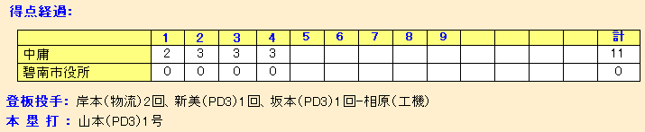 | 9/4 | 知事旗争奪 | 佐川急便中部 | 熱田球場 | 9:30 | 勝ち |