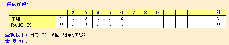 | 9/28 | A級リーグ | RAMONES | 臨海球場 | 12:00 | 勝ち |